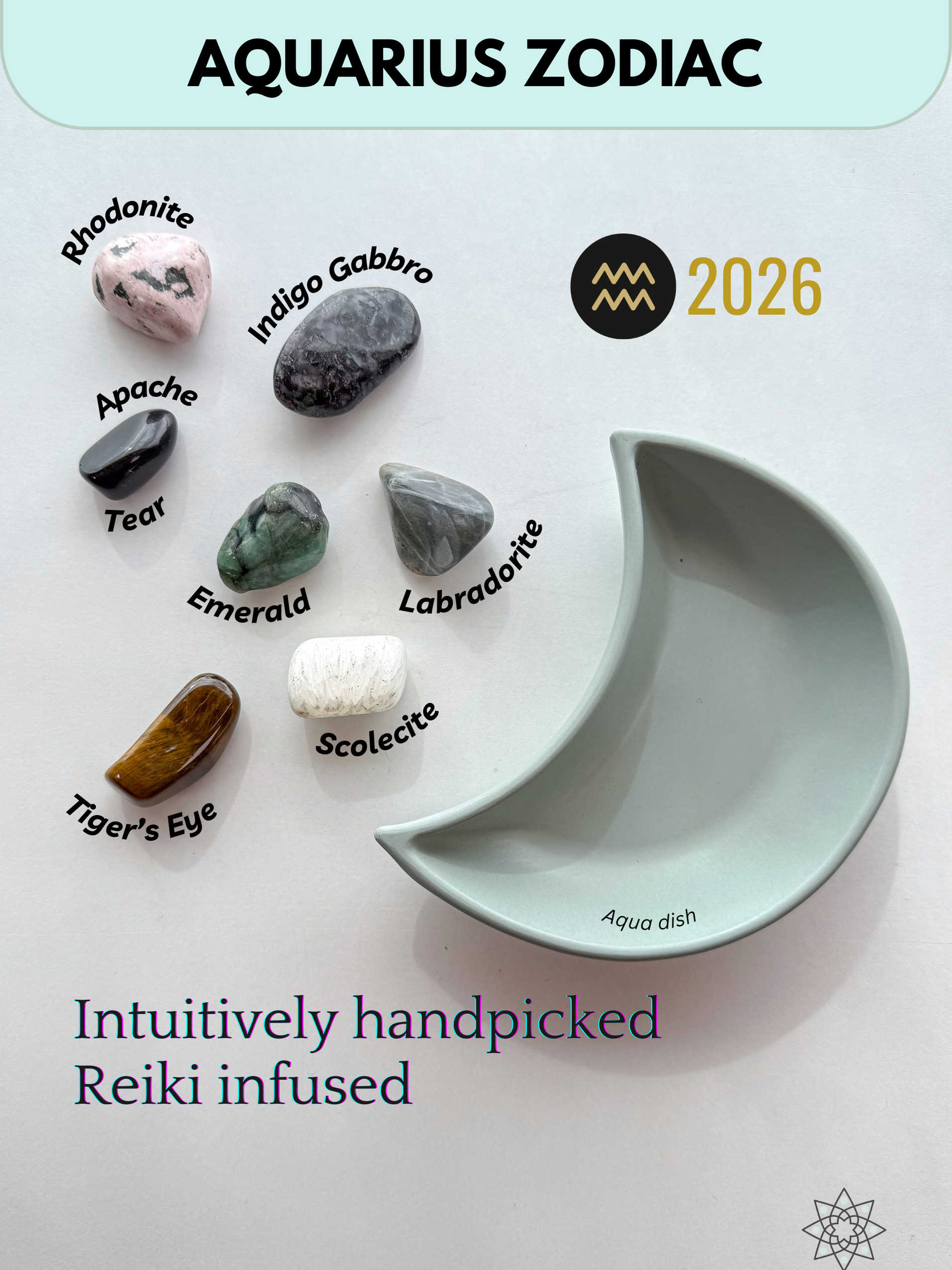 This Set of crystals has been intentionally designed not only to support the energies of those being born under the Aquarius Zodiac sign, but also to support the everyone's journeys as we walk through the energies of the 2026 Aquarius Season.