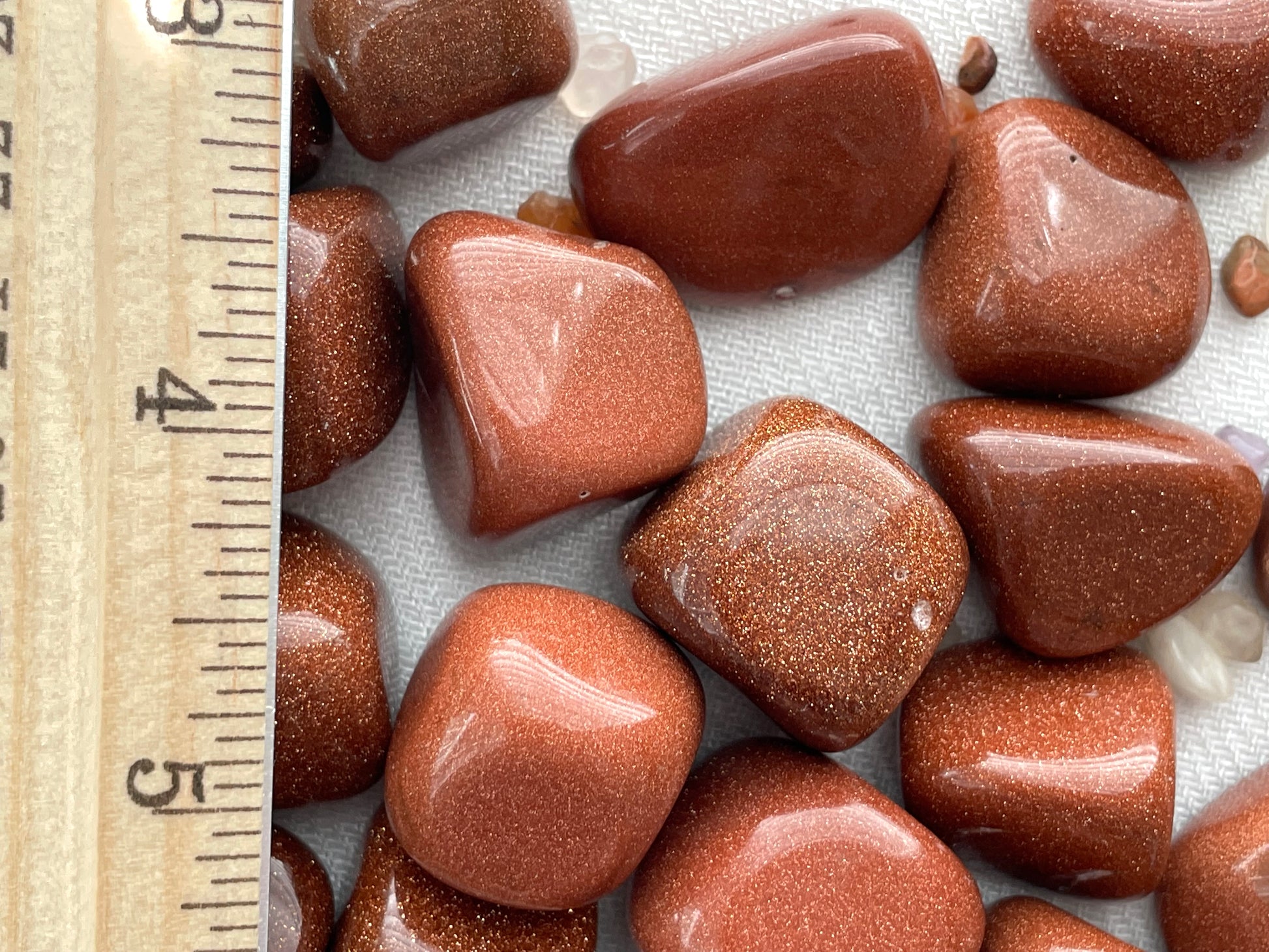 Red Goldstone is a stone of Ambition and Aspiration. Grounding, it offers a sense of security that works great against fear. It energizes and motivates us.