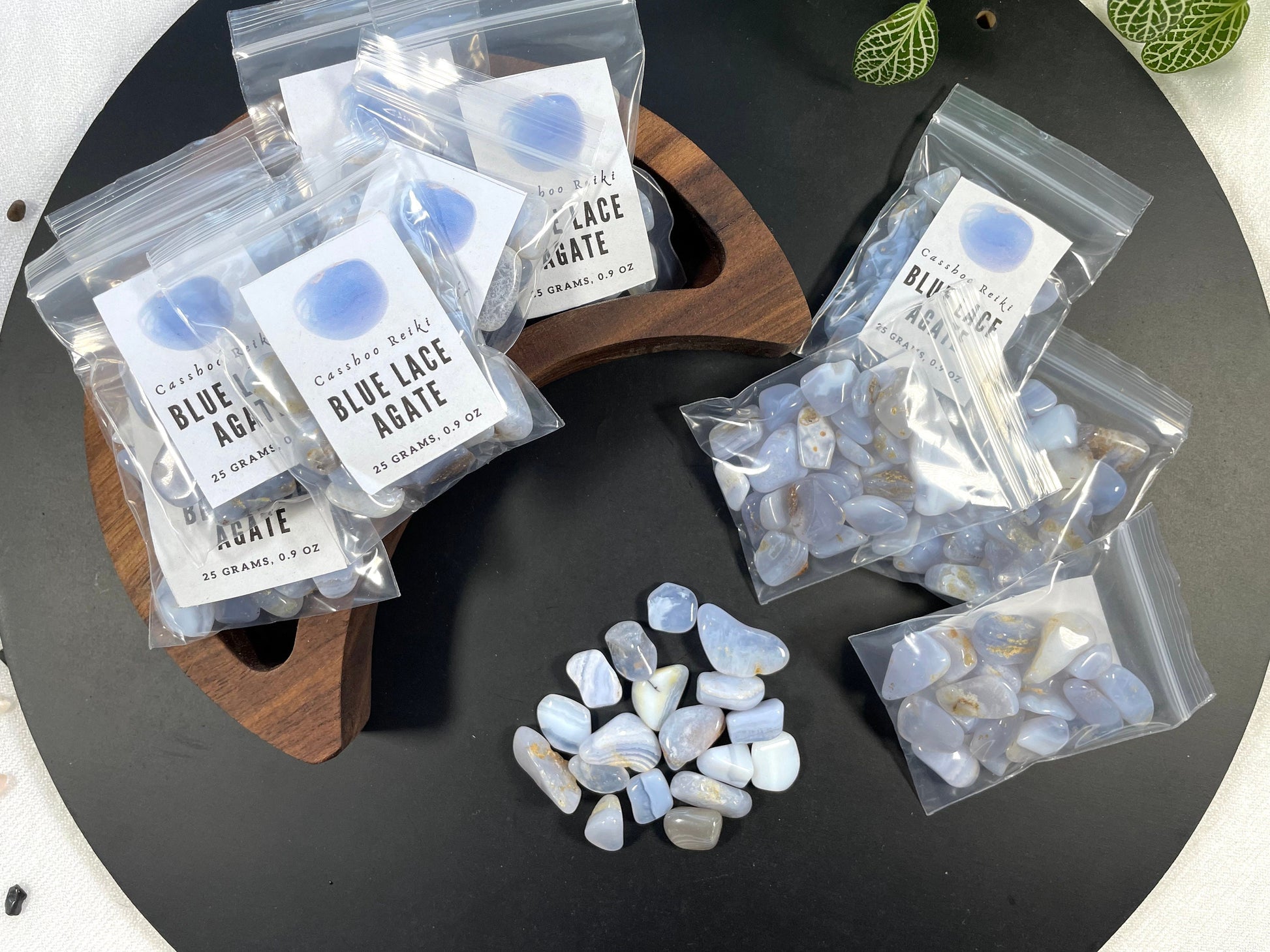 Blue Lace Agate's energy is very gentle and calming. It brings peace to most situations, as well as balance and emotional stability.