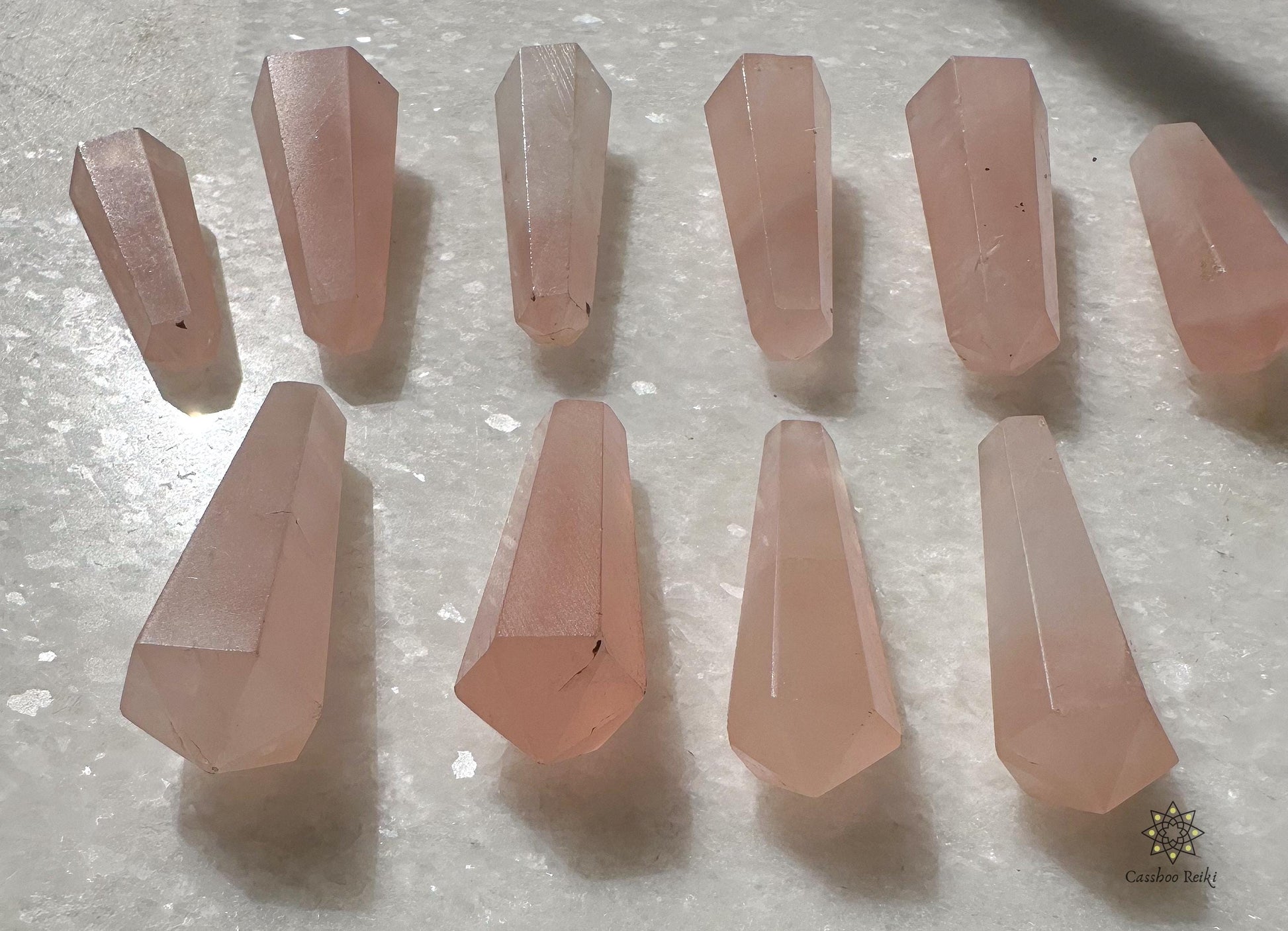 Asymmetric, double terminated, petite-size Rose Quartz wands you can use in your jewelry-making or for crystal grids.