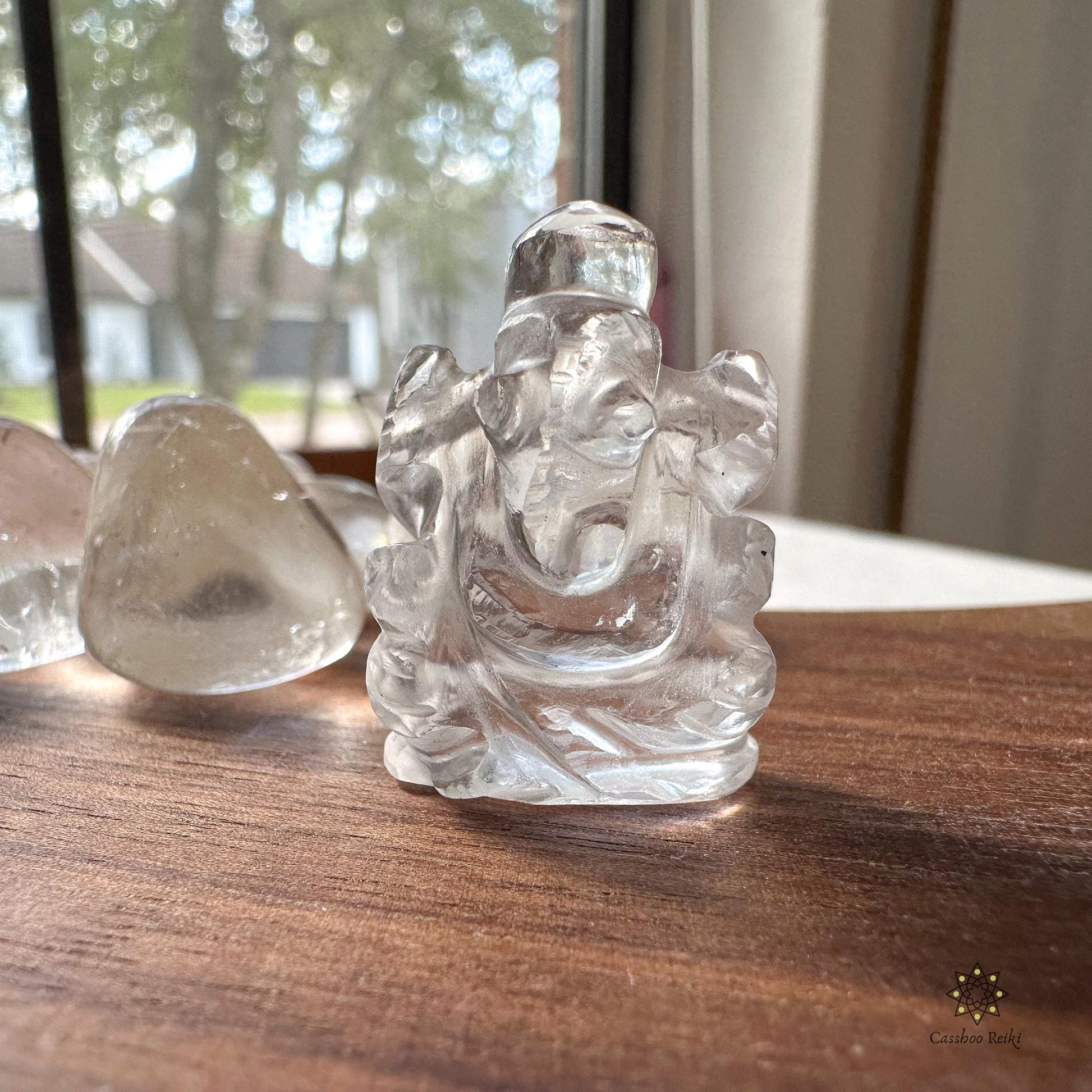 Ganesh Mini Statue in Clear Quartz | Miniature Ganesha Figurine | Gemstone Figurine
