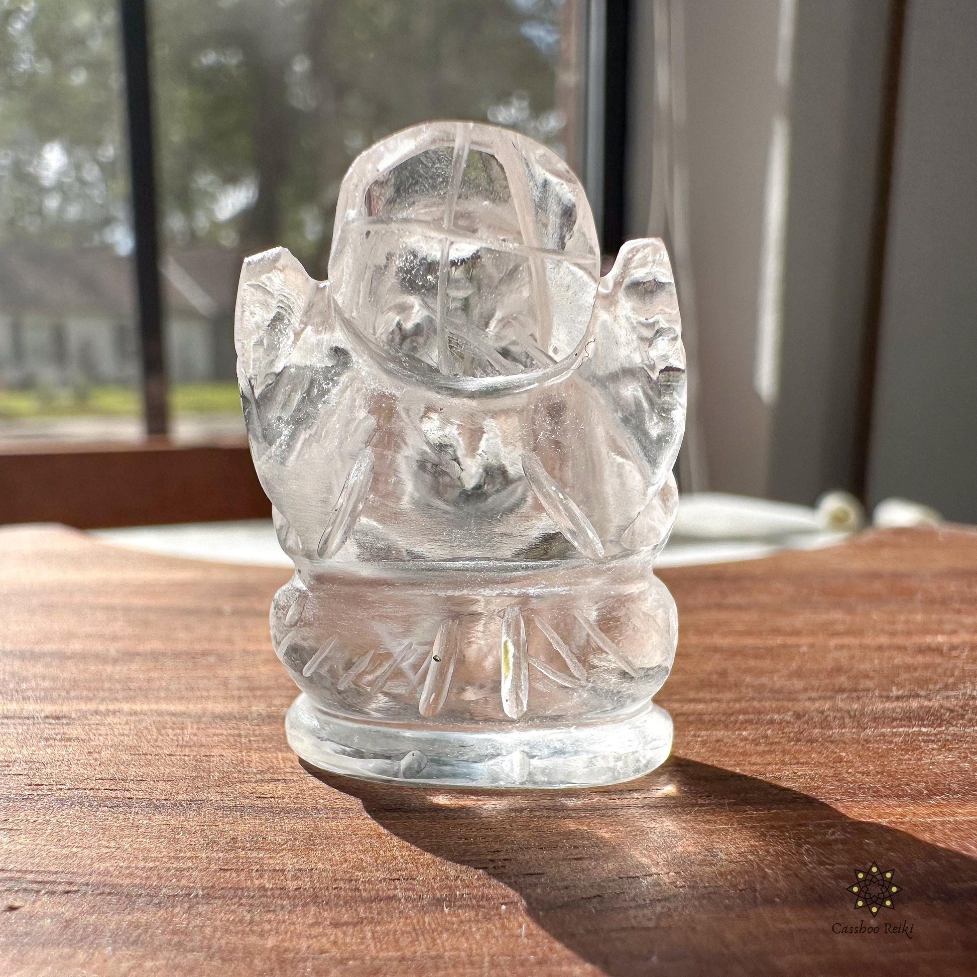 Miniature Ganesha Statue etched in Clear Quartz Gemstone.