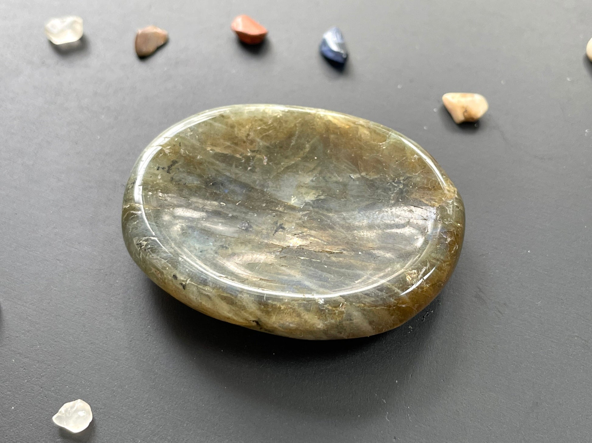 Labradorite is good for when you feel your energy stuck. It enhances the flow of energy between the aura and the chakras.