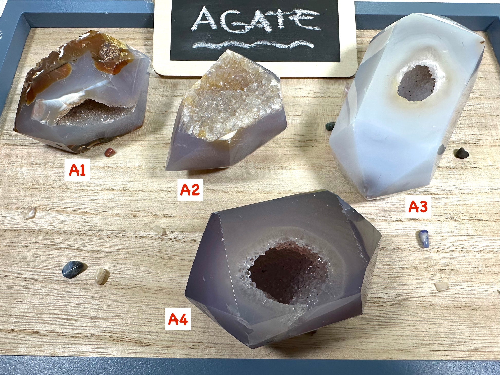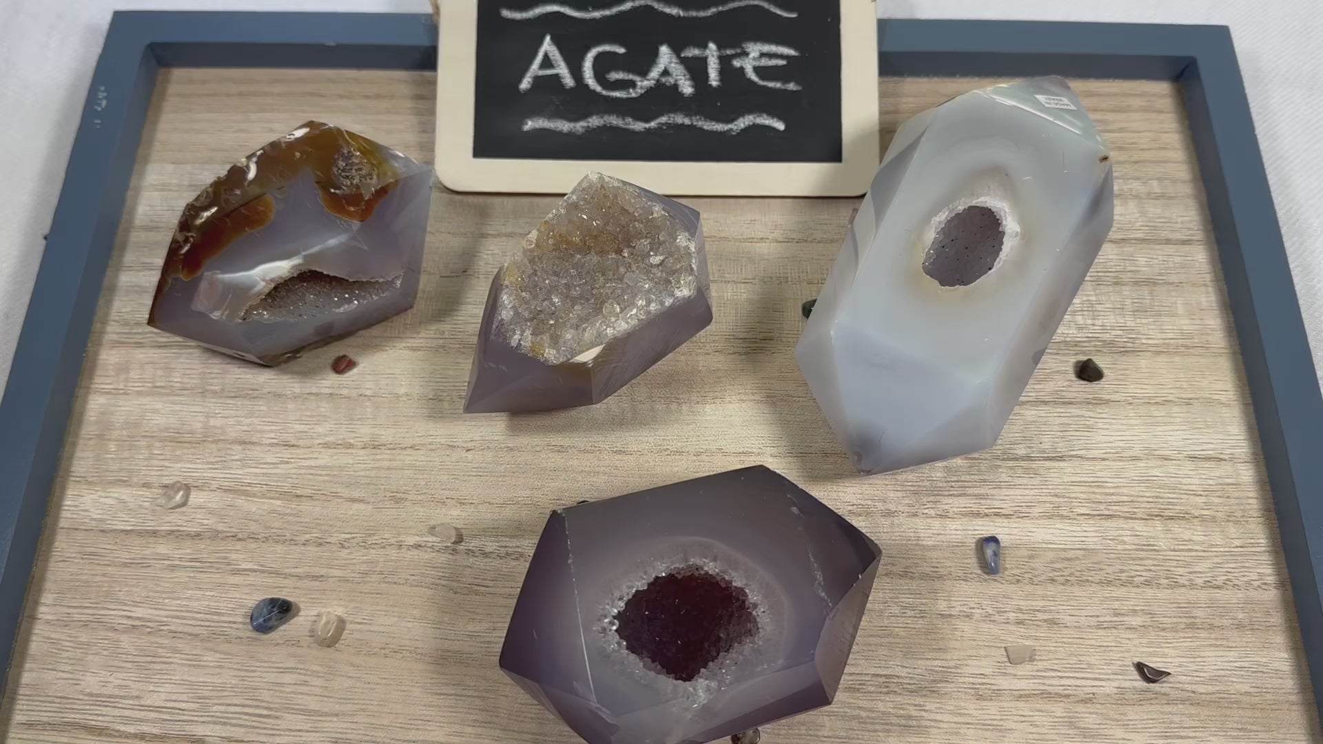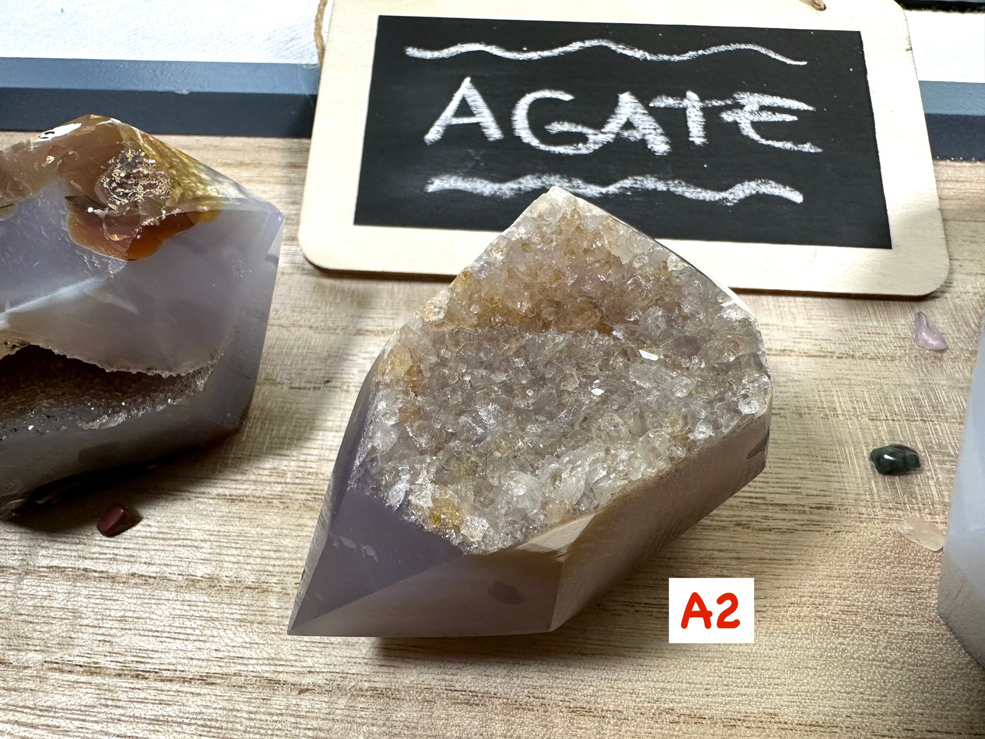 Stunning double terminated points of druzy agate.