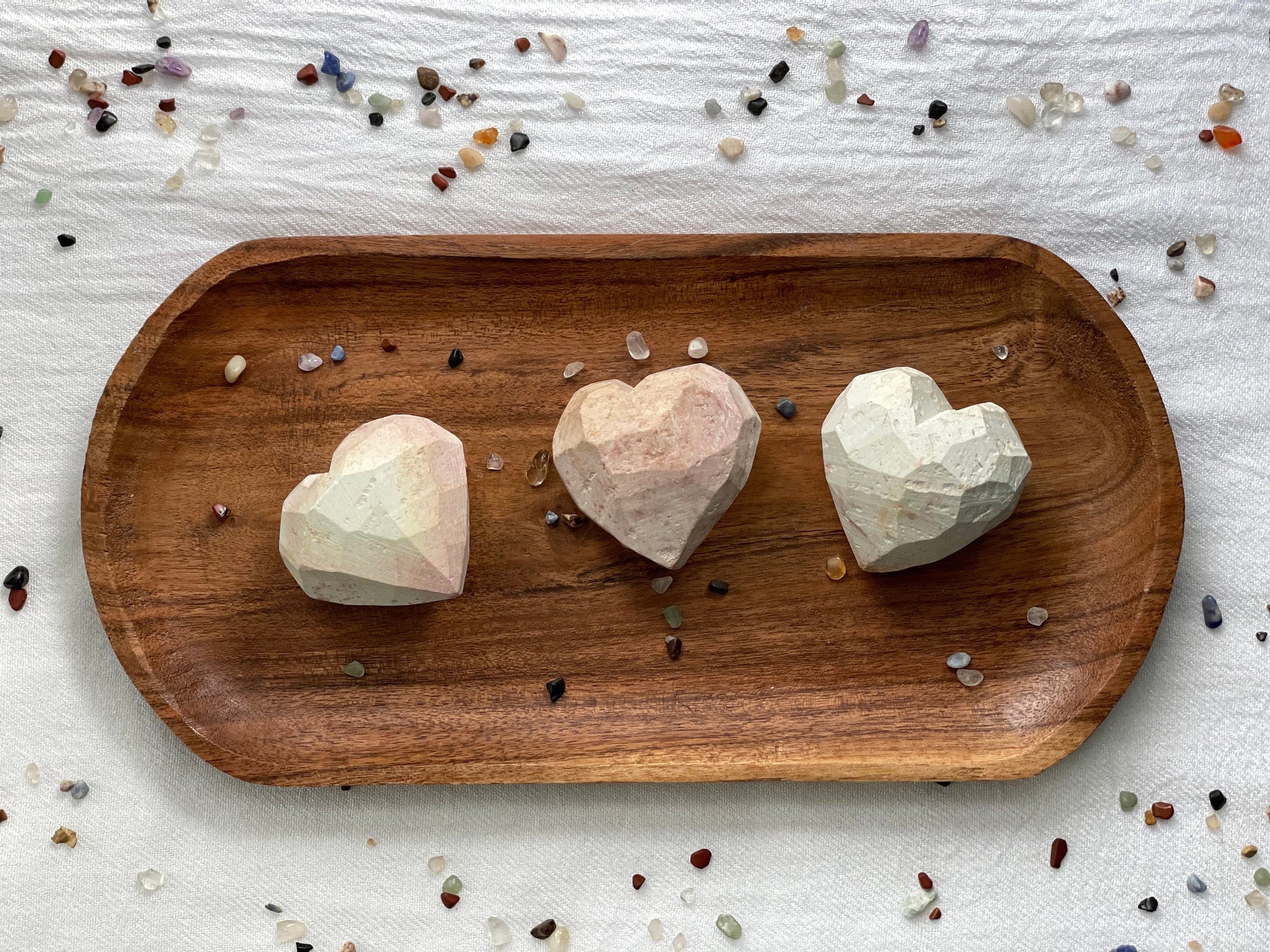 ABOUT SOAPSTONE: Natural Kenyan soapstone is mostly white, but it has variations in color (yellowish, pinkish) due to weathering of the aluminum-rich minerals in the rock. These hearts will show such variations, for each piece is unique. Due to this, I cannot guarantee you'll get a color tone of your preference.
